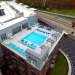 | Amenities: | Smoke/vape-free community. Carport or garage parking available for additional monthly fees. Resident/guest lobby with conversational seating and cyber cafe. Rooftop pool and spa with club room and 85" TVs. High endurance fitness center with free weights and yoga studio. $35/mo pet rent for dogs |